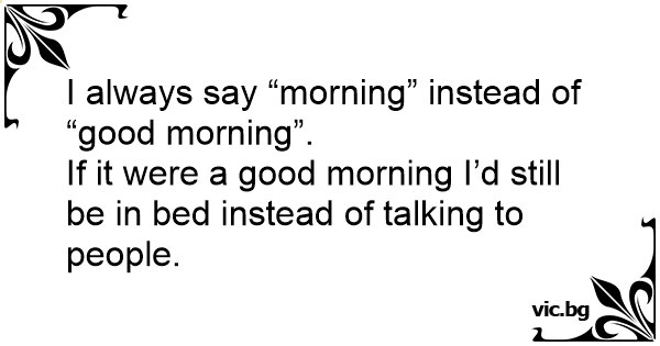 If it were a good morning I’d still be in bed instead of talking to people.