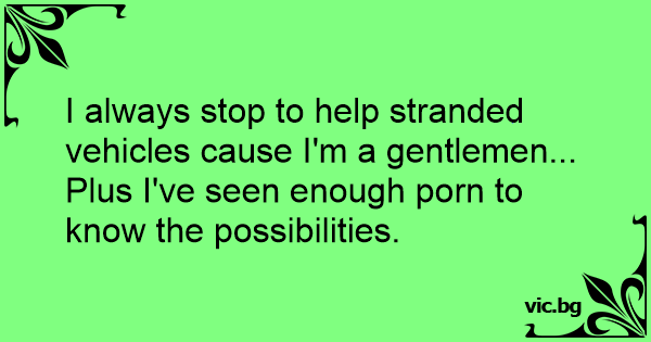 I always stop to help stranded vehicles cause I'm a gentlemen... Plus I've seen enough роrn to know the possibilities.