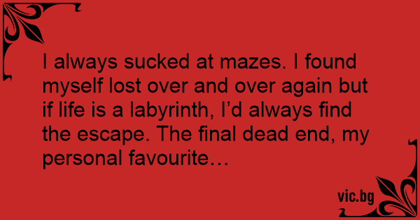 I always suскеd at mazes. I found myself lost over and over again but if life is a labyrinth, I’d always find the escape. The final dead end, my personal favourite…