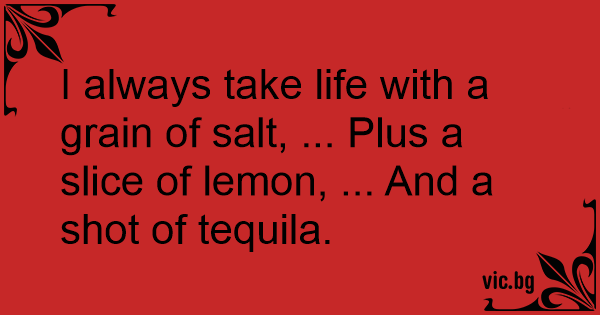 I always take life with a grain of salt, ... Plus a slice of lemon, ... And a shot of tequila.