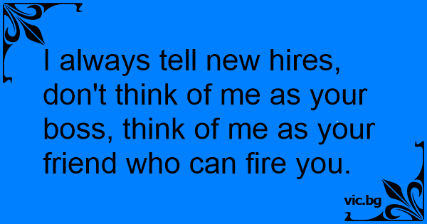 I always tell new hires, don't think of me as your boss, think of me as your friend who can fire you.