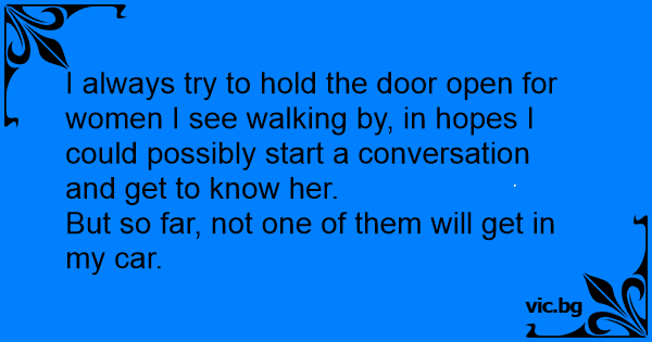 I always try to hold the door open for women I see walking by, in hopes I could possibly start a conversation and get to know her.