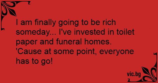 I am finally going to be rich someday... I've invested in toilet paper and funeral homes.