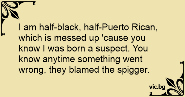 I am half-black, half-Puerto Rican, which is messed up 'cause you know I was born a suspect. You know anytime something went wrong, they blamed the spigger.