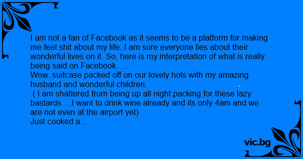 I am not a fаn of Facebook as it seems to be a platform for making me feel shiт about my life. I am sure everyone lies about their wonderful lives on it. So, here is my interpretation of what is really being said on Facebook…..