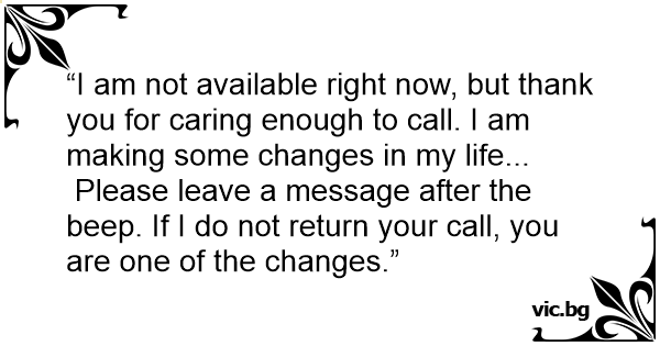 “I am not available right now, but thank you for caring enough to call. I am making some changes in my life...