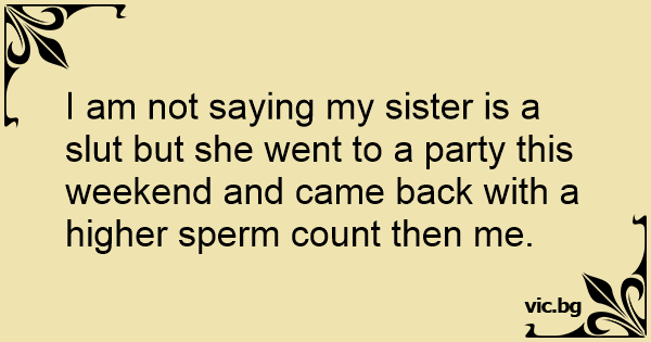 I am not saying my sister is a sluт but she went to a party this weekend and came back with a higher sреrм count then me.