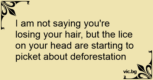 I am not saying you're losing your hair, but the lice on your head are starting to picket about deforestation