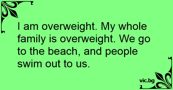 I am overweight. My whole family is overweight. We go to the beach, and people swim out to us.
