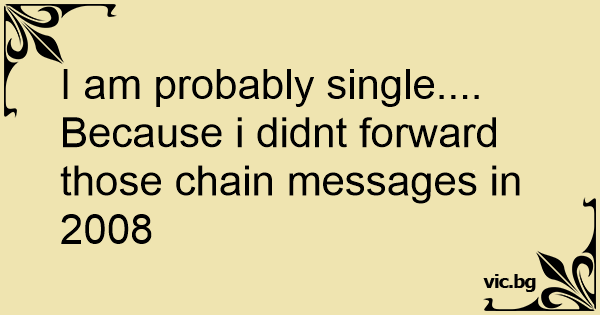 I am probably single.... Because i didnt forward those chain messages in 2008
