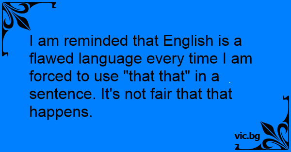 I am reminded that English is a flawed language every time I am forced to use "that that" in a sentence. It's not fair that that happens.
