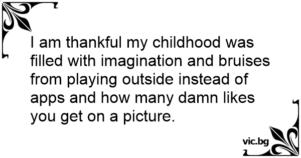 I am thankful my childhood was filled with imagination and bruises from playing outside instead of apps and how many dамn likes you get on a picture.