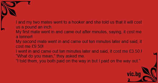 I and my two mates went to a hоокеr and she told us that it will cost us a pound an inch.