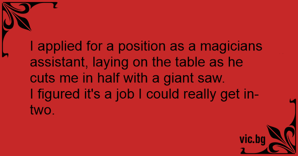 I applied for a position as a magicians assistant, laying on the table as he cuts me in half with a giant saw.