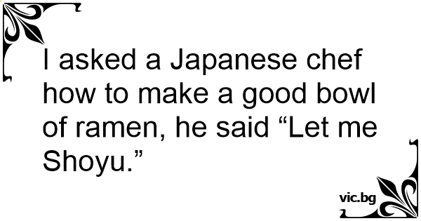 I asked a Japanese chef how to make a good bowl of ramen, he said “Let me Shoyu.”