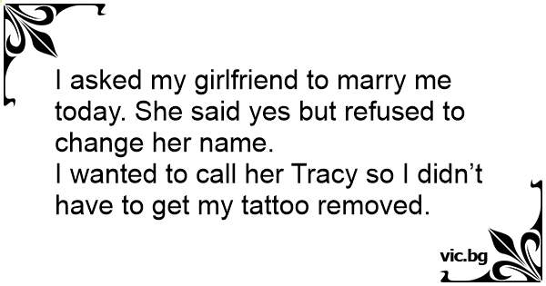 I wanted to call her Tracy so I didn’t have to get my tattoo removed.