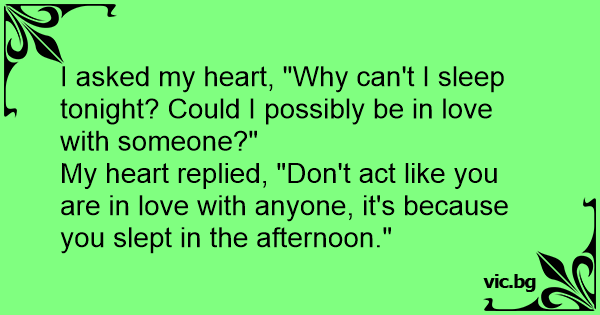 My heart replied, "Don't act like you are in love with anyone, it's because you slept in the afternoon."