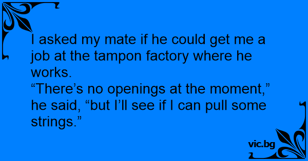 I asked my mate if he could get me a job at the тамроn factory where he works.