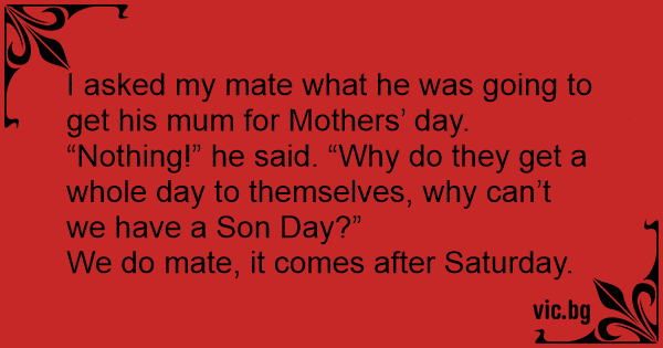 I asked my mate what he was going to get his mum for Mothers’ day.