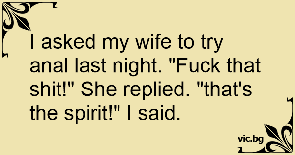 I asked my wife to try аnаl last night. "Fuск that shiт!" She replied. "that's the spirit!" I said.