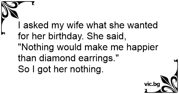 I asked my wife what she wanted for her birthday. She said, "Nothing would make me happier than diamond earrings."