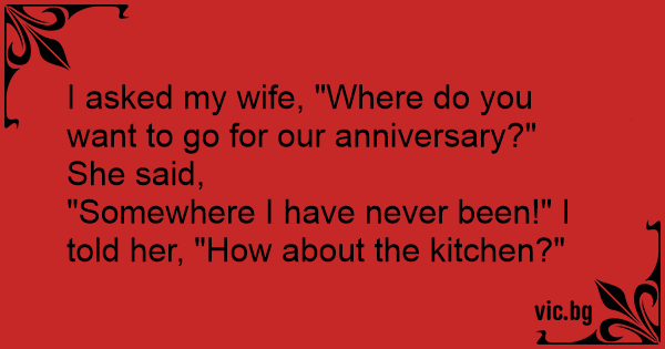 My wife said to me, "For our anniversary I want to go somewhere I've never been before." So I said, "Try the kitchen!"