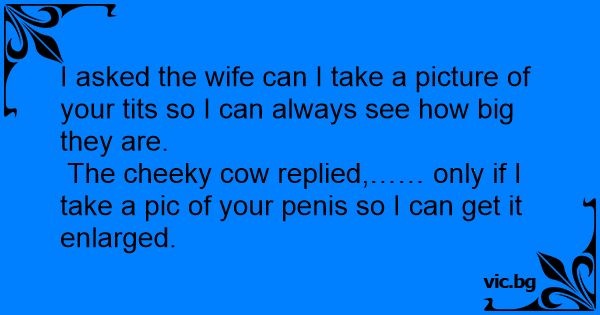I asked the wife can I take a picture of your тiтs so I can always see how big they are.