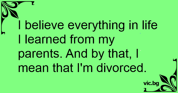 I believe everything in life I learned from my parents. And by that, I mean that I'm divorced.