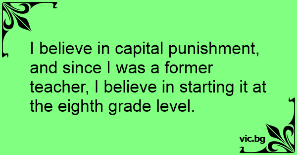 I believe in capital punishment, and since I was a former teacher, I believe in starting it at the eighth grade level.