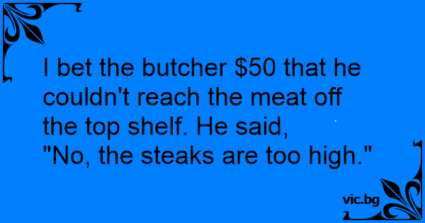 I bet the butcher $50 that he couldn't reach the meat off the top shelf. He said,