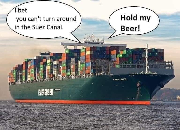 Je parie que tu ne sais pas faire un tour complet dans le canal de Suez !!! Tiens ma biere!!!