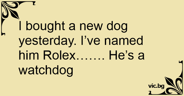 I bought a new dog yesterday. I’ve named him Rolex……. He’s a watchdog