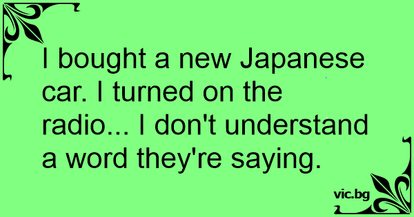 I bought a new Japanese car. I turned on the radio... I don't understand a word they're saying.