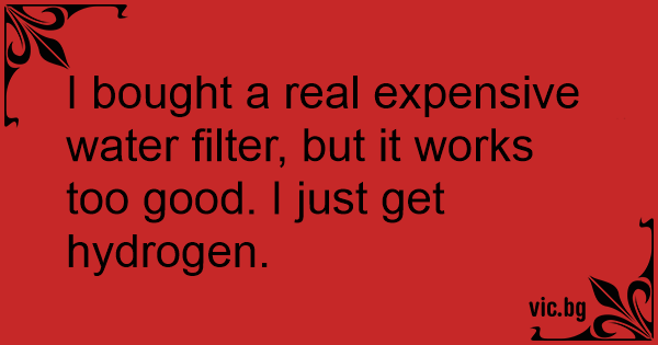 I bought a real expensive water filter, but it works too good. I just get hydrogen.