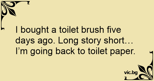 - Jag hörde att du köpte en toalettborste igår. - Ja det gjorde jag. - Vad tyckte du om den? - Nja jag tycker nog att papper är bättre...
