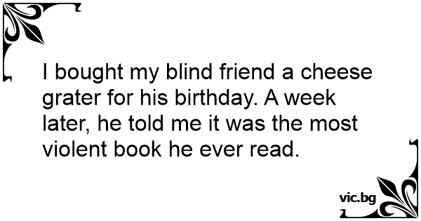 I bought my blind friend a cheese grater for his birthday. A week later, he told me it was the most violent book he ever read.