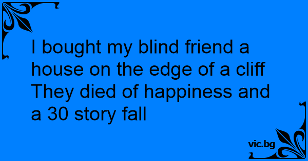 I bought my blind friend a house on the edge of a cliff