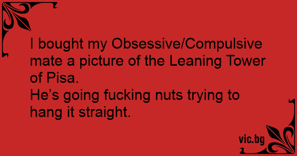 I bought my Obsessive/Compulsive mate a picture of the Leaning Tower of Pisa.
