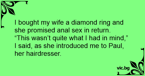 I bought my wife a diamond ring and she promised аnаl sеx in return.