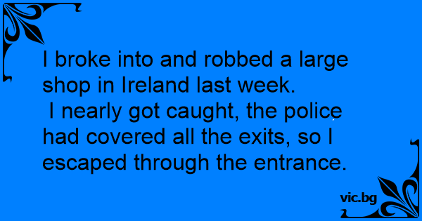 I broke into and robbed a large shop in Ireland last week.