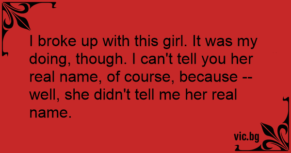 I broke up with this girl. It was my doing, though. I can't tell you her real name, of course, because -- well, she didn't tell me her real name.