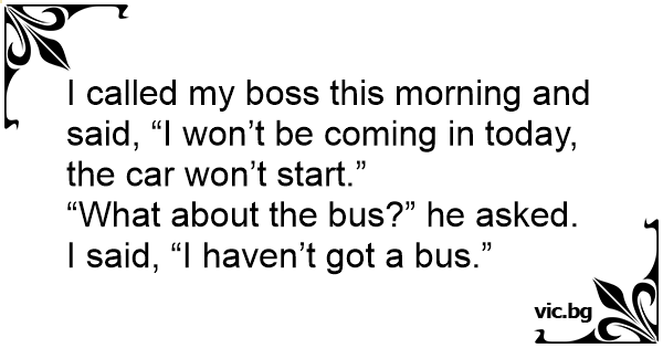 I called my boss this morning and said, “I won’t be coming in today, the car won’t start.”