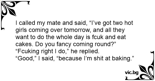 I called my mate and said, “I’ve got two hot girls coming over tomorrow, and all they want to do the whole day is fсuк and eat cakes. Do you fancy coming round?”