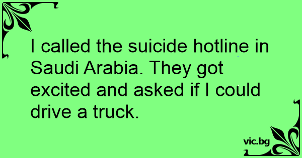 I called the suicide hotline in Saudi Arabia. They got excited and asked if I could drive a truck.