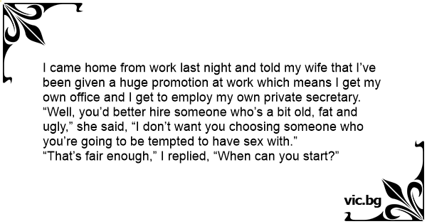 I came home from work last night and told my wife that I’ve been given a huge promotion at work which means I get my own office and I get to employ my own private secretary.