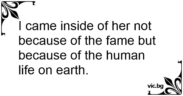 I came inside of her not because of the fame but because of the human life on earth.