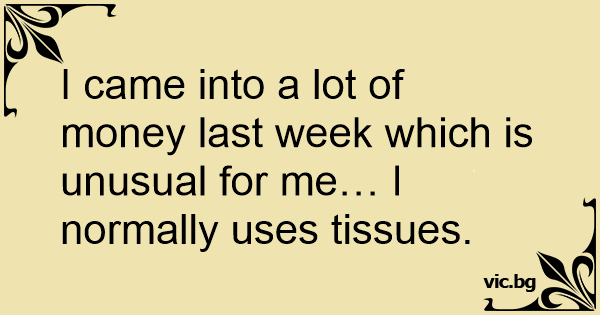 I came into a lot of money last week which is unusual for me… I normally uses tissues.