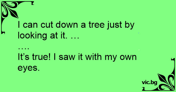 I can cut down a tree just by looking at it. …