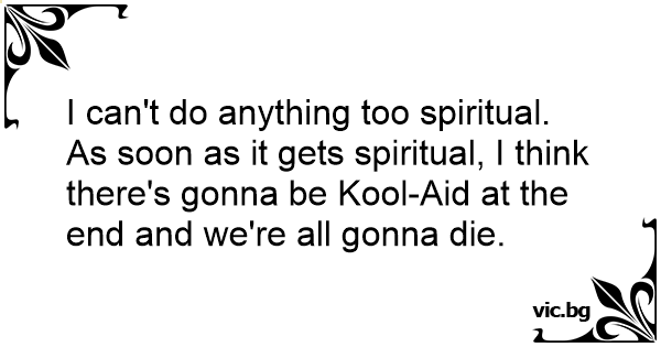 I can't do anything too spiritual. As soon as it gets spiritual, I think there's gonna be Kool-Aid at the end and we're all gonna die.