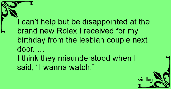 I can’t help but be disappointed at the brand new Rolex I received for my birthday from the lеsвiаn couple next door. …